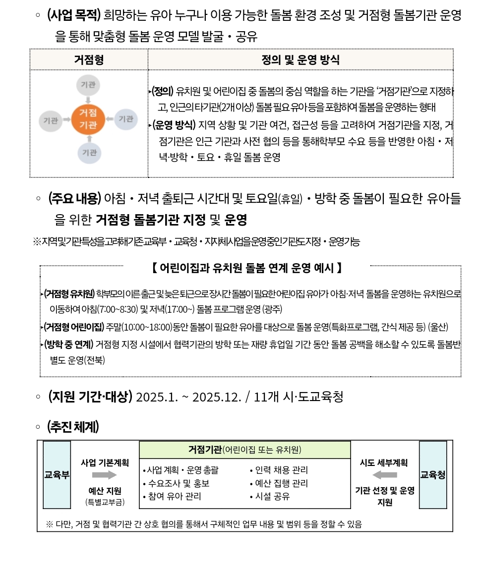 - 연장 돌봄: 오후 7시 ~ 9시 (기관별 협의 필요)