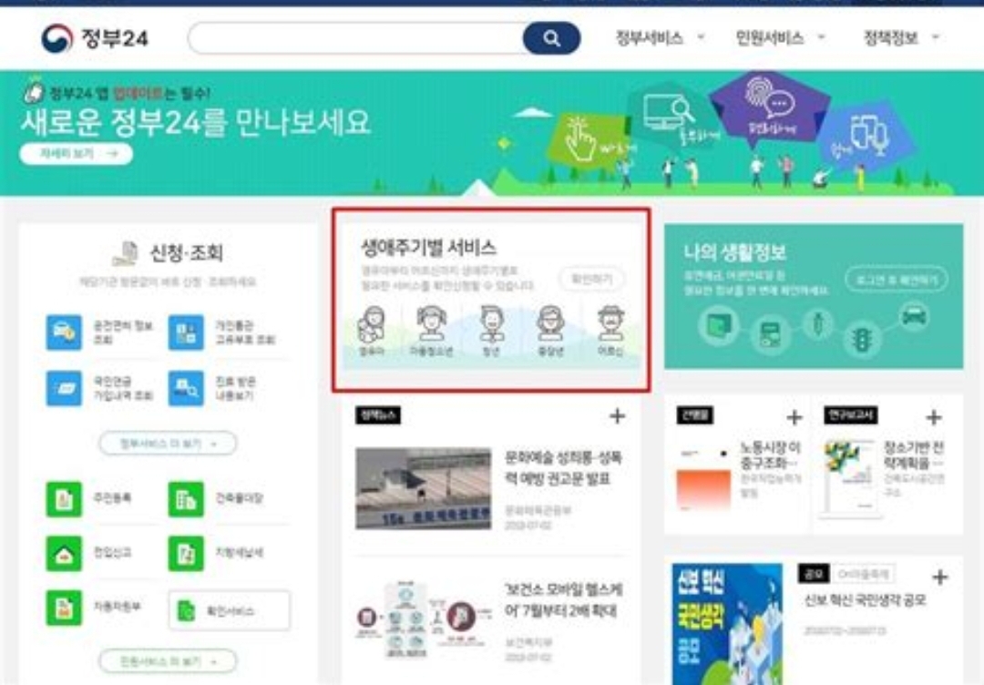 | 교육지원 | 학자금 대출, 교육급여, 교복지원금 확인 및 신청 |