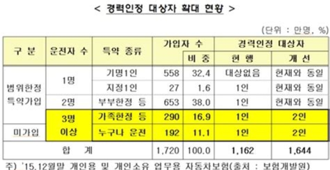 - 군 운전병, 가족 보험, 렌터카 등 자동차 운전경력 다양한 조건 인정